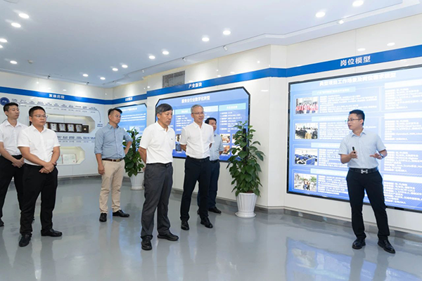 拜访领导第一时间参观了金数据技术展厅,对金数据技术的开展历程、业务模块、经营理念、合作成果等内容进行深入分析,对金数据技术构建人才培养“三循环”生态模式、深度参与高校课程改革、引入职业认证等举措表示赞同。