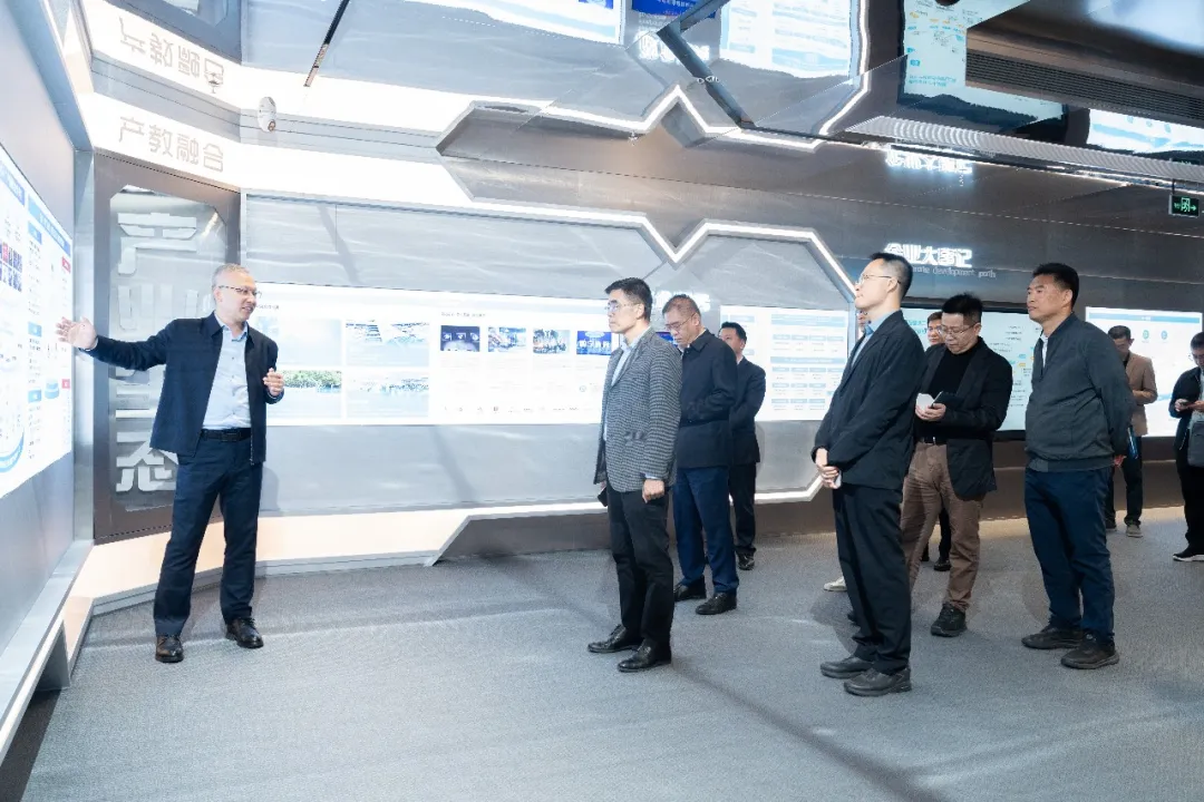 拜访领导第一时间参观了金数据技术展厅,详细分析公司开展历程、业务模块与经营理念。刘国锋总裁介绍了公司依托产业优势深耕ICT人才培养的具体实践,并回顾了近年来与市人社部门、南山区人资局、街道及社区共同召开的培训与竞赛工作。随后,领导一行考察了金数据培训中心的场地设施与师资情况,并听取了关于鸿蒙智慧教室及全栈实验箱的详细介绍。