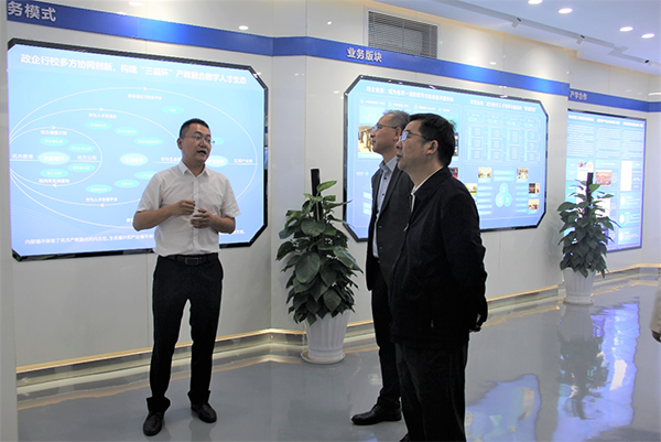 拜访嘉宾一行第一时间参观了金数据展厅,在湖北客户经理涂一祥的讲解下,对金数据技术的开展历程、产教融合业务、经营理念、合作成果进行深入分析,对金数据技术人才培养“三循环”生态模式、深度参与高校专业体系建设、科技创新人才培养等表示赞同。随后,三方围绕“恩施职业技术学院·华为公司·金数据技术”三方深化校企合作等事项展详细研讨。